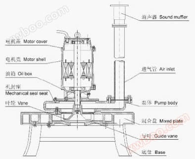Aeratore subacqueoUtilizzando la trasmissione diretta del motore e della ruota, utilizzando la forza centrifuga generata dalla rotazione della ruota per scaricare l'acqua circostante per formare una zona a bassa pressione per aspirare il flusso d'acqua, mentre l'aria viene inalata a vuoto all'ingresso della ruota, mescolando pienamente l'aria e l'acqua nella camera di miscelazione per formare una miscela uniforme di gas e acqua, scaricare rapidamente sotto l'effetto della forza centrifuga.