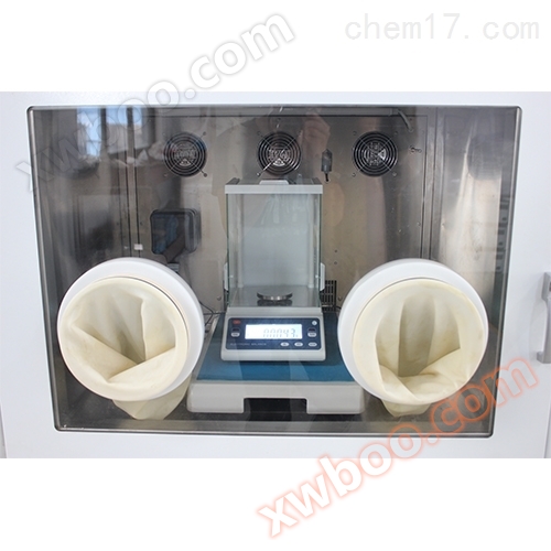 La scatola ha due ingressi di funzionamento e è isolata con guanti lunghi in lattice per evitare l'effetto del processo di funzionamento manuale sulle condizioni di umidità e temperatura costanti.